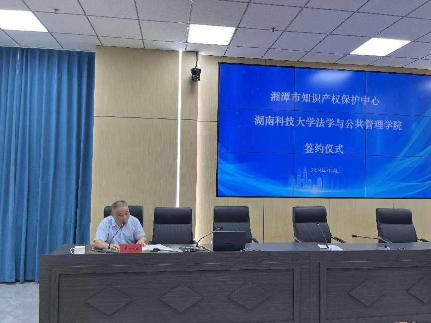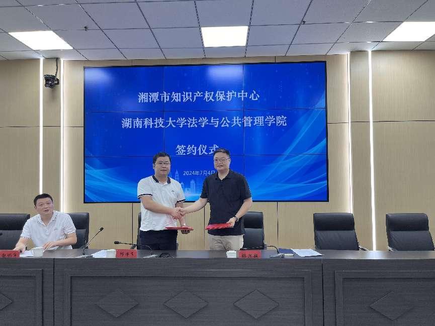 为实现科大法学专业培养模式创新升级、促进科技法治发展,2024年7月4日上午,法管学院邱帅萍院长一行赴湘潭市知识产权保护中心展开合作交流。湘潭市知识产权中心主任杨思超、综合管理部部长赵彬宇等接待和出席交流活动。杨思超主任从保护中心发展历程、职责与结构、知识产权管理、纠纷调解等方面进行了全面的讲解。邱帅萍院长就湖南科技大学法管学院科技法治方向发展概况和发展愿景等内容进行了介绍。双方达成了一系列合作事项,并表示今后将进一步深化合作,在创新人才培养模式、促进科技法治发展和知识产权保护等方面做出共同努力。
