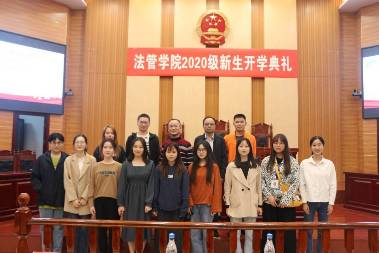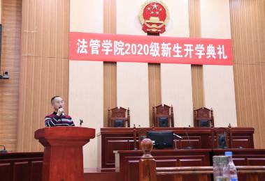 9月27日下午,法管学院2020级新生开学典礼于立言楼模拟法庭隆重举行。yl6809永利院长徐德刚、党委书记黄伟、副院长邱帅萍、副院长李云霖、副院长胡正昌、党委副书记蒋会平、学工办老师以及法学、公管两个专业的新生出席了此次大会。
