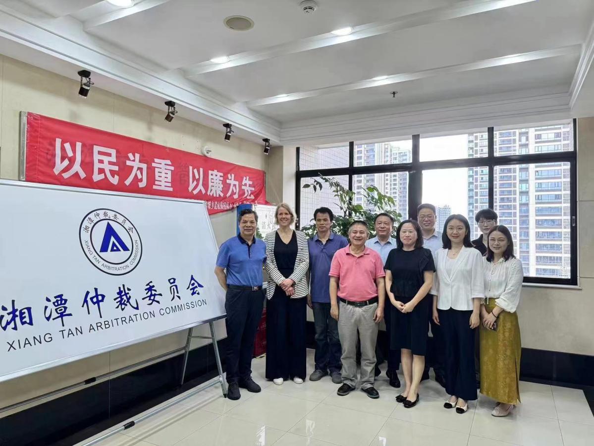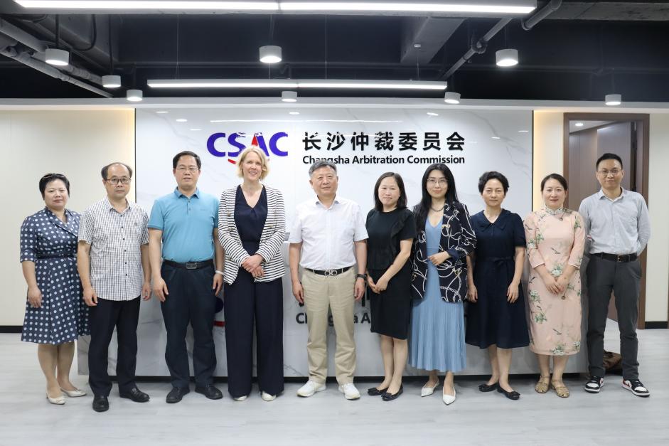 下午,Maud教授一行赴长沙仲裁委员会进行调研。长沙仲裁委员会陈炜副主任、潘兵副秘书长等主持会议,并详细介绍了其在线仲裁平台的建设和运行情况,分享了长仲在线上仲裁实践中积累的经验。资深仲裁员欧福永、曾海燕、尹承丽等参与座谈,并就绿色仲裁、技术争议仲裁解决的证据制度、新兴技术争议解决与传统技术争议解决的关系等展开了深入讨论。Maud Pieres教授在座谈中也分享了欧盟以及比利时线上仲裁制度的发展趋势。