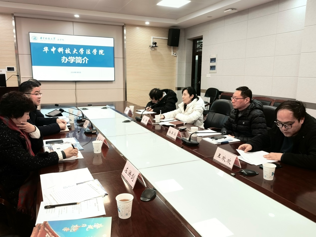 3月5日下午,邱帅萍院长一行考察了华中科技大学法学院,受到华中科技大学大学法学院姜芳书记、徐军华副院长、李冠煜教授、王欢欢副书记等热情接待,姜芳书记发表了欢迎致辞,徐军华副院长简要介绍了华中科技大学法学院的发展历史、法学学科发展及人才培养情况,他表示,希望通过本次座谈进一步加强与湖南科技大学yl6809永利的交流合作。