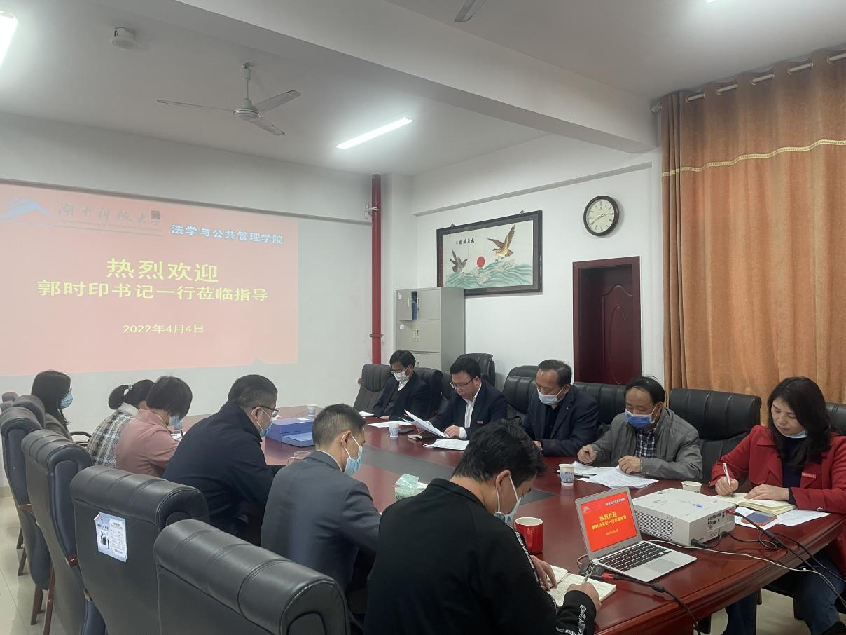 最后,郭时印书记对我院扎实推进学科建设、务实开展防疫工作表示了充分肯定。他要求学院在下一阶段发展过程中,一是加强教学型学院建设。要将学院定位为教学型学院,人才培养是第一位,要凝练精品、突出特色,打造高水平教学型学院。二是积极拓展新的增长点。在学科建设方面,要重点加强纪检监察学科建设,抢占制高点,做到早谋划、早部署、早推进。三是全力加强师资队伍建设。要扩大规模,提升学历与职称,要往高层次人才走。四是强化社会服务。要进一步推进法律援助、法律服务与地方立法工作,提高社会影响力,取得经济效益。五是加强班子建设。要加强班子成员政策、专业、管理以及思想政治工作的理论学习,切实将学习成果转化为带队伍的生动实践。