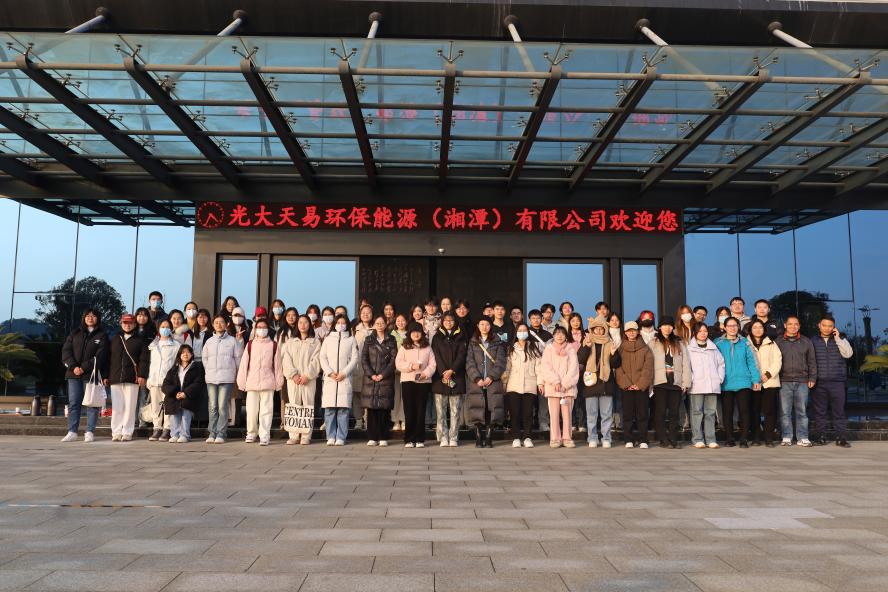 ▲学生在光大天易环保能源(湘潭)有限公司见习合照