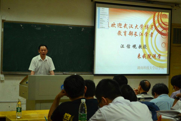 |  6月8日晚7点30分,十教附一104教室座无虚席。武汉大学博导、教育部长江学者汪信砚教授应我院邀请来校讲学,讲授主题为《什么是人学》。湖南科技大学教务处副处长罗建文、法学院院长廖加林、哲学系以及思想政治教育系全体老师和120余名法学院学生到场聆听。 汪教授的讲座主要从以下几个方面进行讲述:一、什么是人学,人学的定位如何;二、人学与物学的分野;三、人学与哲学的区别和联系。 汪教授首先从“human studies、human science、humanities”三个概念对“什么是人学”做了区分。关于人学与物学的分野,他认为:人学相对物学而言,有三个方面的表现,包括理论指趣即人学研究的目的是揭示人的生存意义,是一种价值观表达,人学的研究对象具有未完成性,而物学是一种知识体系,其研究对象是具有既成性;二是致思方向,即人学对象总是从个别的具体的角度去研究对象,而物学总是从个别到特殊、再从特殊到普遍、从普遍到更普遍,总是以普遍抽象的角度去研究对象;三是思维方式,人学主要是非实证广式,而物学主要是实证方式。当然,他最后说道,“哲学只有作为人学才有可能,只有作为价值哲学才有可能”。 大家都表示,讲座内容丰富又条理分明,举例生动有趣同时又发人深省,给了我院师生深刻启迪。 (责任编辑:admin) |