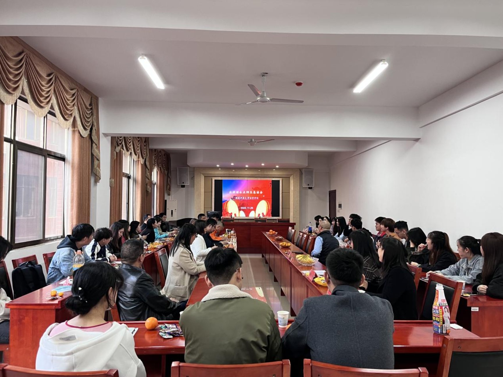 2022年11月25日下午,2022级法律硕士师生恳谈会在立言楼425会议室成功举行。学院党委邱帅萍书记、宋智敏副院长、主管研究生事务的马驰升主任、徐德刚教授、胡正昌教授、胡之芳教授等众多法学专业老师到场指导,22级全体研究生与会。