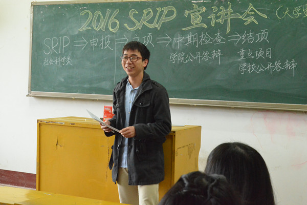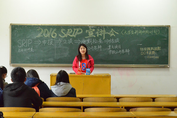 为培养我院学生的科研创新意识,提高同学们的实践能力,做好2016年SRIP立项工作,3月8日下午2点,我院科技部于十教308召开宣讲会,2015年SRIP立项同学蔡泽涛到场分享经验,我院2014级、2015级班团参加会议。 科技部部长李昀霖首先介绍了SRIP的内容与价值,她说:“大学生科研创新计划项目(简称SRIP)旨在提高大学生的科研创新能力,由共青团湖南科技大学委员会组织进行,分为自然科学类和社会科学类,成功立项的项目可申报校级‘挑战杯’、节能减排、创新创意等科技竞赛。”随后,蔡泽涛分享了自己的心得体会,他表示,通过参与SRIP项目可以学到许多知识,并能提高自己的创新实践能力。 会议最后,15级法学一班班长张晓宇说道:“SRIP立项对我们在校低年级学生而言,是一个提高自我创新实践能力的平台,也是一次学以致用的契机,我一定会积极参与并做好班级的组织宣传工作!” (责任编辑:admin) |