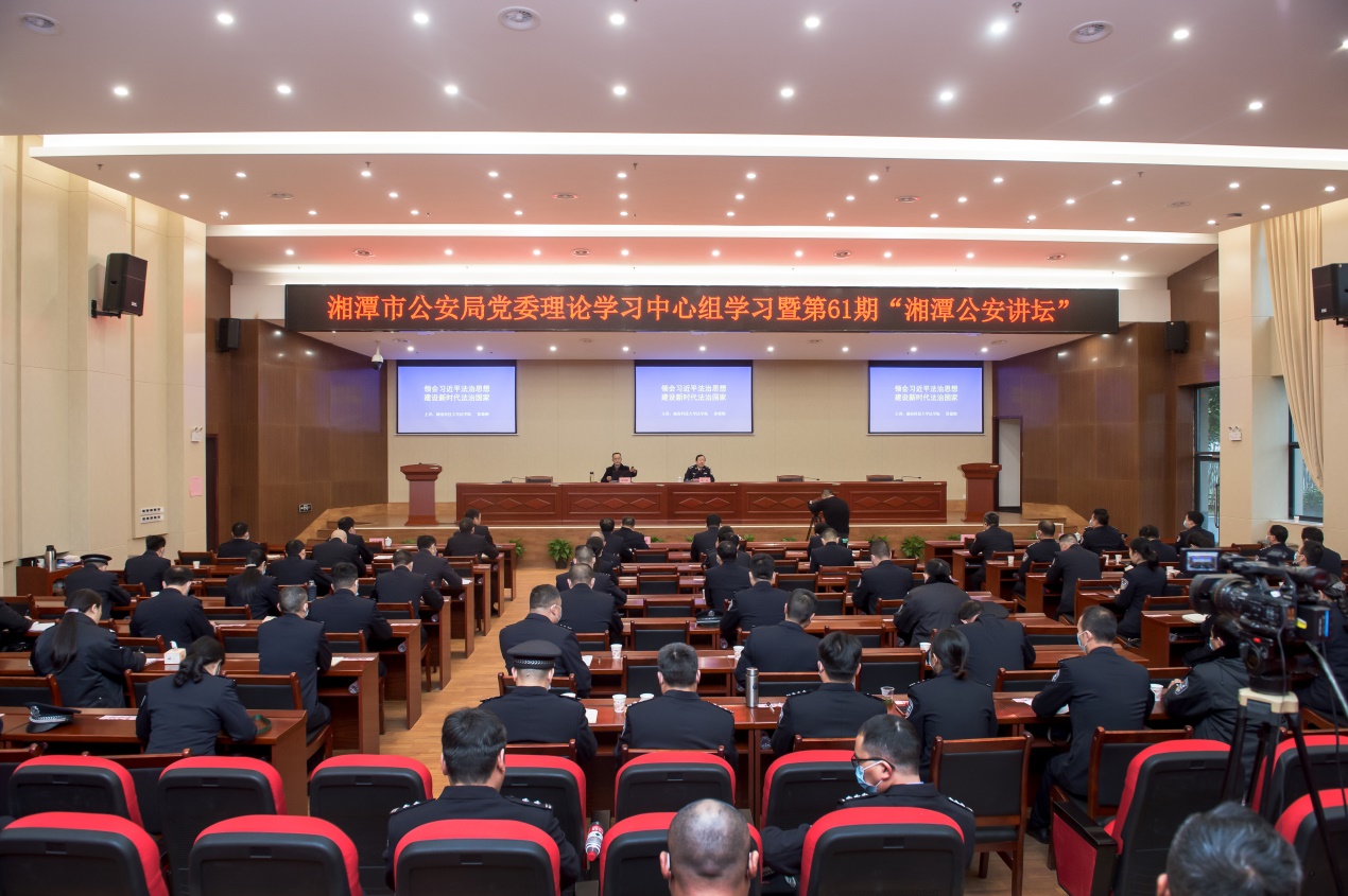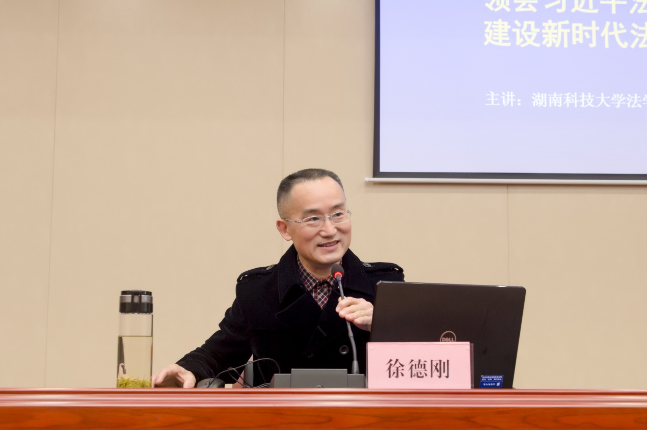 2月4日上午,应湘潭市公安局党委邀请,我院徐德刚教授在市公安局警官培训中心为市局党委理论学习中心组暨第61期“湘潭公安讲坛”作了一次专题讲座。授课以《领会习近平法治思想建设新时代法治国家》为主题,从习近平法治思想产生的背景、主要内容及实践、贯彻落实“习近平法治思想”的举措等三个方面作了详细解读,旨在深入推进全市公安机关学习、实践习近平法治思想。参加学习的有市公安局党委班子成员,各县市区局(分局)、驻局纪检监察组、局直各单位主要负责人等共计一百余人。同时,现场讲座录音录像将发放全市民警学习。湘潭市人民政府副市长、市公安局长罗伟主持讲座并全程参与学习。讲座受到与会人员一致好评。