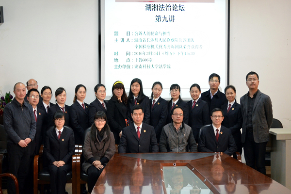 3月25日下午3时,我院湖湘法治论坛第九讲于我校第十教学楼606开讲,长沙县人民检察院检察官李江发携其公诉团队莅临论坛,开展以“公诉人的使命与担当”为主题的讲座。我院副院长喻军、法学系主任邱帅萍、刘鄂老师及胡之芳、李云霖、宋智敏等出席本次讲座,15级法学专业同学参加讲座。 李江发检察官询问在场同学对于“检察”的理解,并以“查”、“捕”、“诉”、“抗”、“纠”五字高度凝练地阐述了检察官的职责。“公诉人是维护社会公平正义的最后一道防线”伍飞检察官言简意赅地概括了公诉人的使命与责任担当。“90后”检察官腾拓则结合自身求学、入职的诸多经历激励学弟学妹们珍惜学习机会,为从事法律职业而做充足的知识储备。在互动交流环节中,肖竹晖、贺勇、陶天吉等学子就法学理论、实务、实时热点中遇到的疑惑向检察官团体请教,宋智敏对当前司法改革背景下做出的关于跨行政区域设立人民检察院这一决策的法律依据提出疑问,并询问检察官团体的相关看法。论坛现场气氛活跃,学术氛围浓厚。 最后,喻军以“情感体验的真实性、检察内务的娴熟性、教育内容的丰富性”高度评价了此次讲座。“雄关漫步真如铁,而今迈步从头越”胡之芳以此名句向检察官们致敬,与同学们共勉。 (责任编辑:admin) |