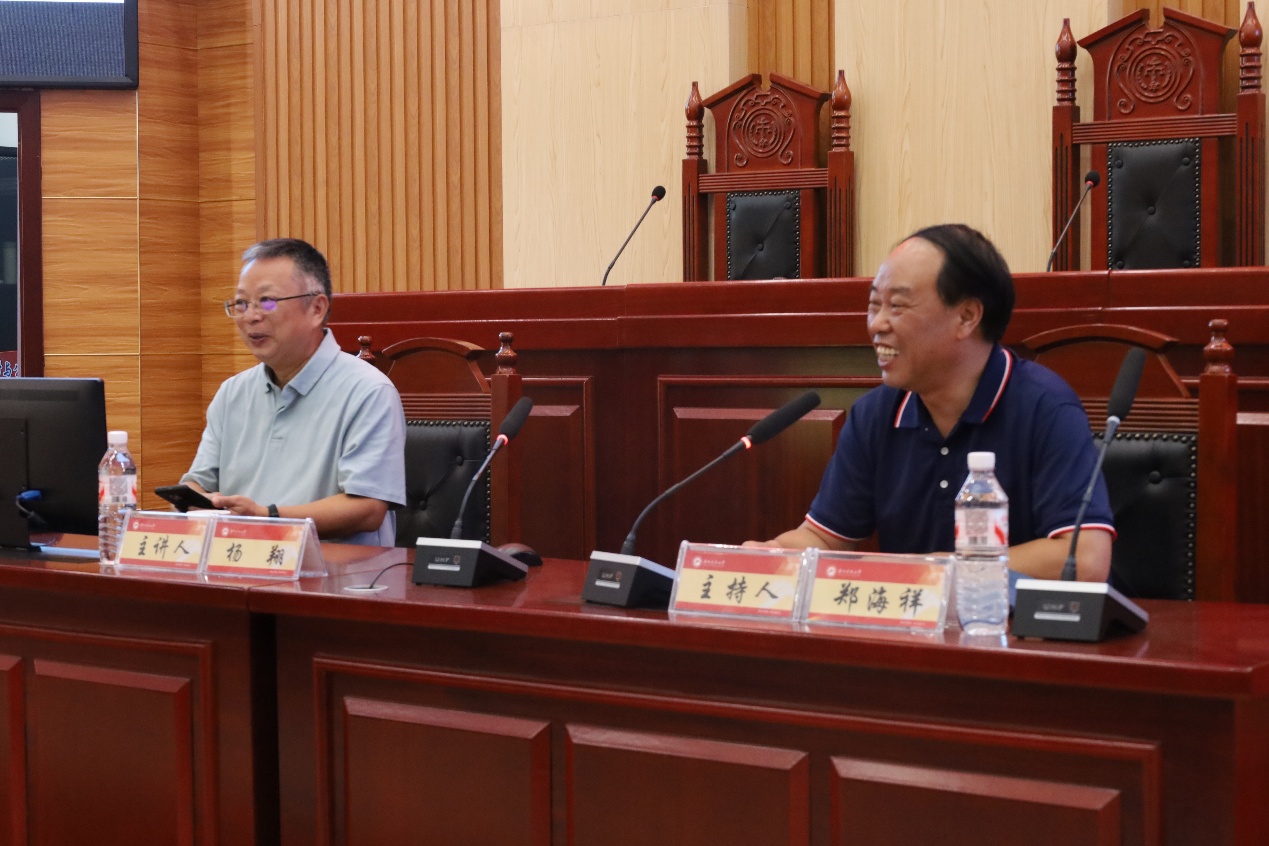2025年10月10日下午,湖湘法治论坛第155讲暨耕熙实务讲坛第42讲专题讲座活动在立言楼模拟法庭顺利举行。本次讲座由学院和省普通高校哲学社会科学重点研究基地(检察理论研究领域)共同举办。讲座以“法律知识、法律职业与法治信仰”为主题,湖南省法学会学术委员会主任、湘潭大学法学学部教授、博士生导师杨翔教授应邀主讲。我院党委书记郑海祥主持讲座,副院长宋智敏教授、学院部分教师以及2025年全体新生参加讲座。