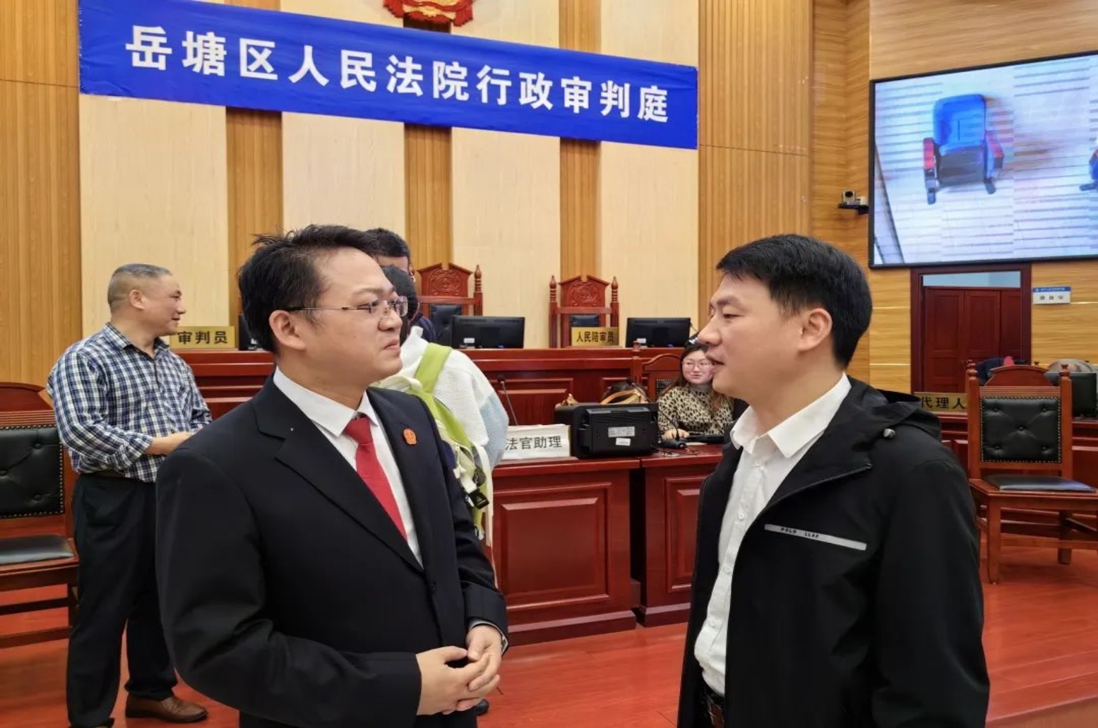4月28日上午,岳塘区人民法院行政审判庭来我院模拟法庭审理一起“民告官”的案件,全国人大代表黄乐以及和平街道人大代表团应邀参加了庭审观摩。