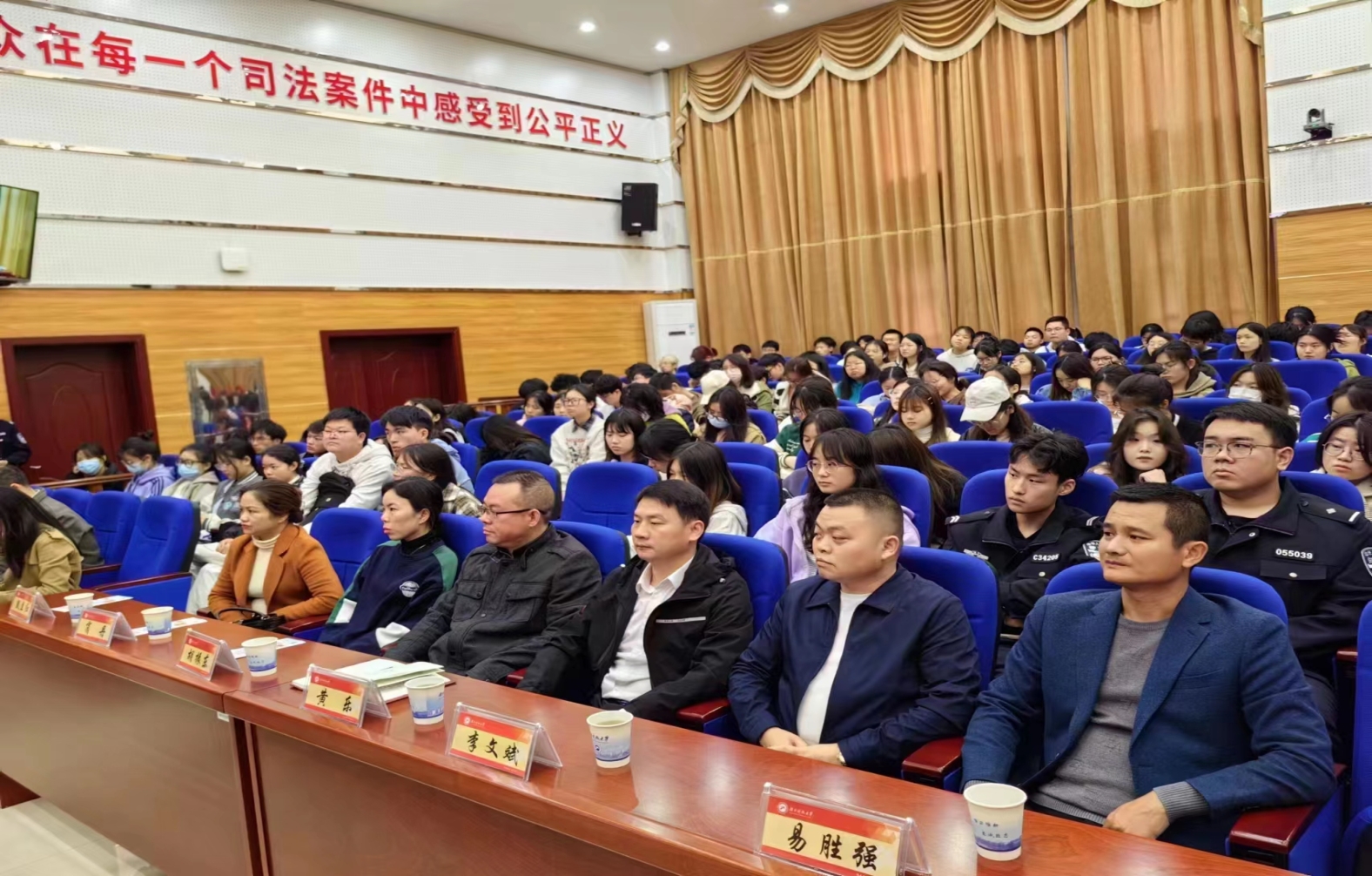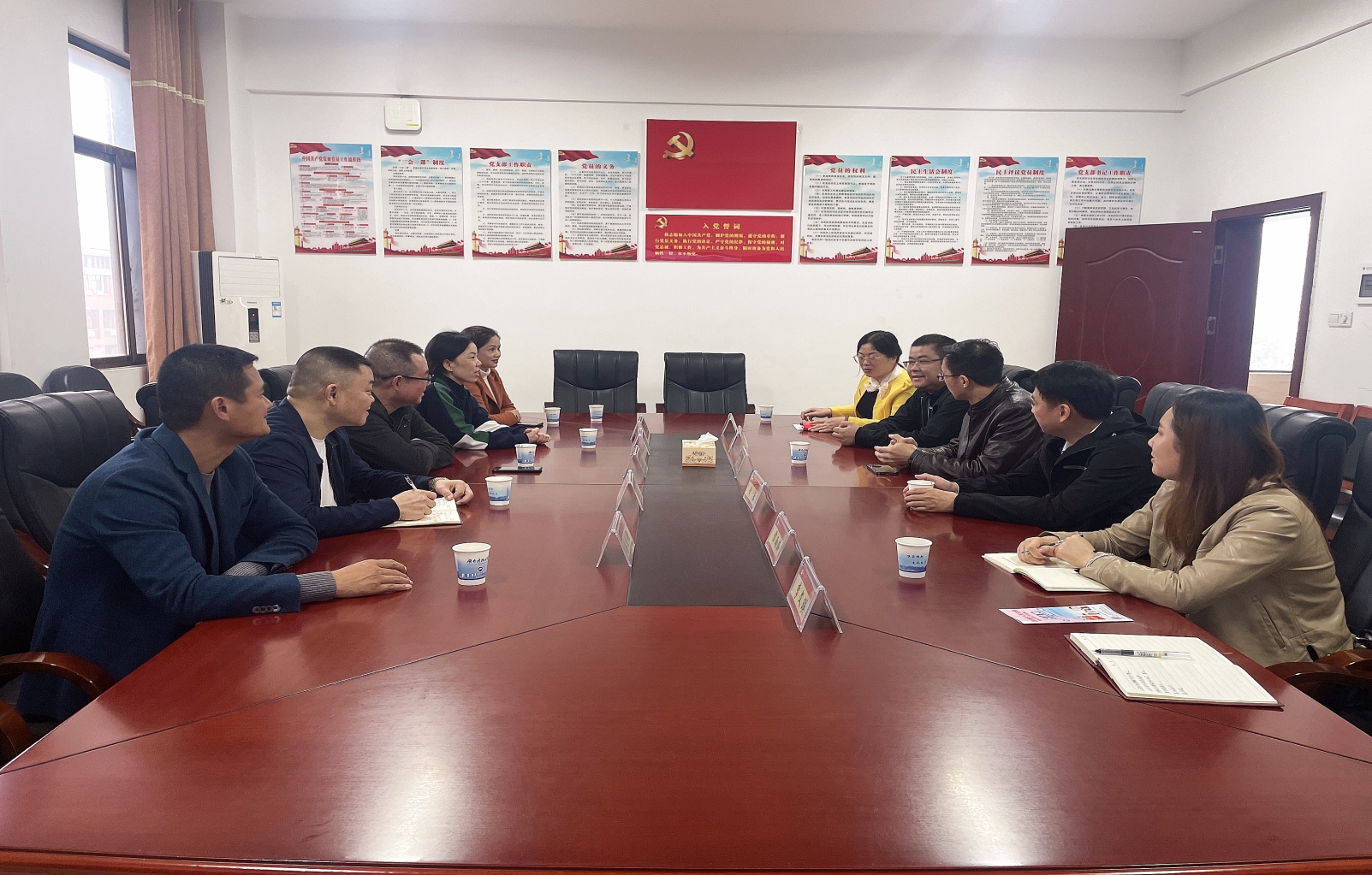 庭审结束后,各位代表在立言楼427开展学习贯彻习近平新时代中国特色社会主义思想的主题教育。我院院长邱帅萍,校统战部副部长罗登辉代表院校两级对各位代表的到来表示热烈欢迎,并希望加强双方的合作和交流,取得共赢的效果。