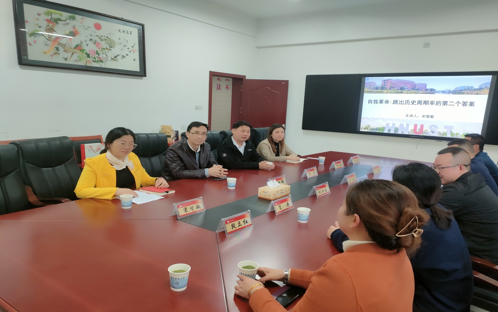 随后,雨湖区人大代表,我院副院长宋智敏教授向各位代表作了题为《自我革命:跳出历史周期率的第二个答案》的主题教育讲座。宋院长结合自己开展主题教育的心得体会,向各位代表介绍了“自我革命”的生成语境、价值意义、主要客体、时代特征和现实启示。代表们纷纷表示受益匪浅,不虚此行。