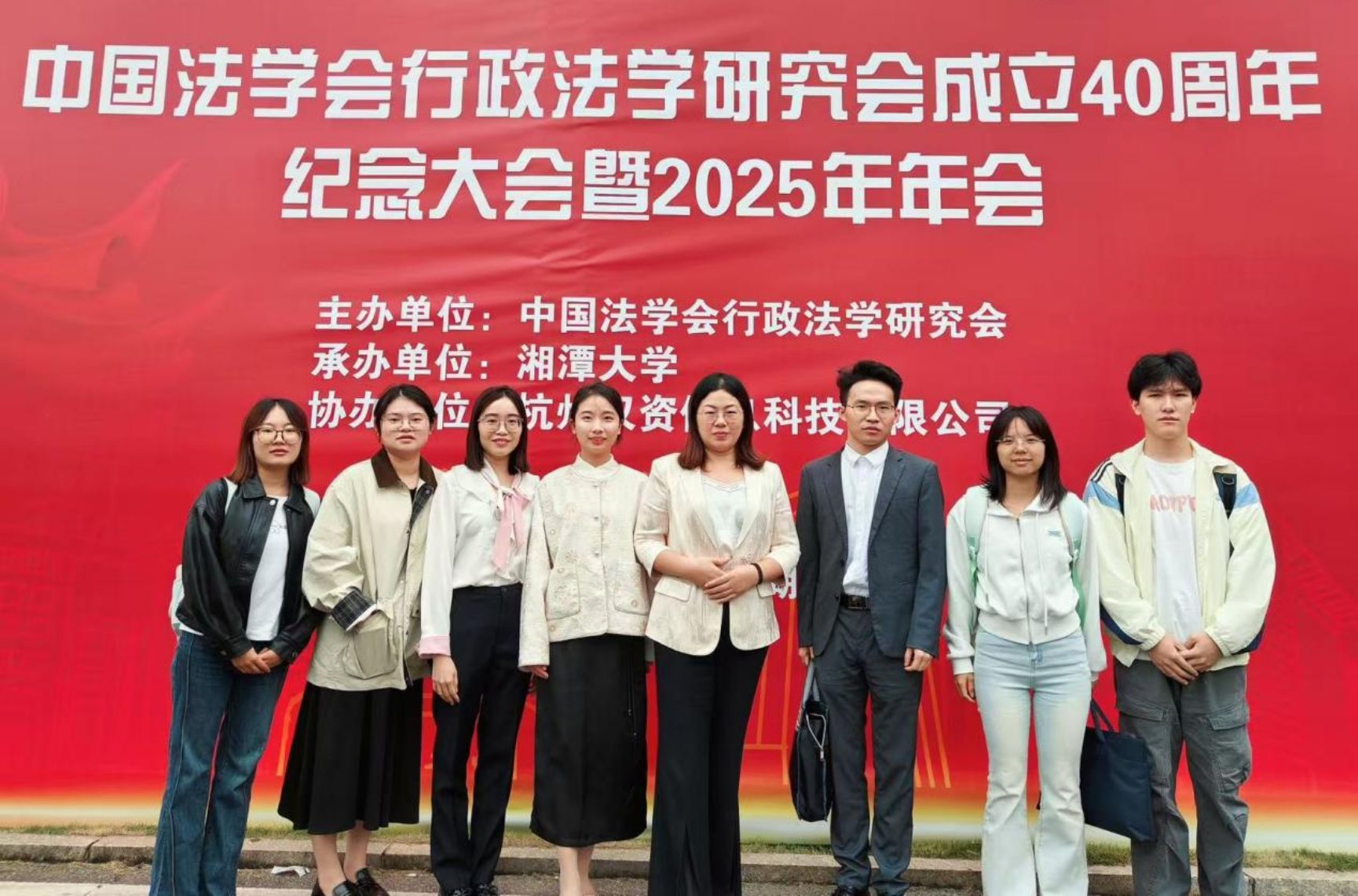 2025年10月18日至19日,中国法学会行政法学研究会成立40周年纪念大会暨2025年年会在湖南湘潭隆重召开。本次大会由中国法学会行政法学研究会主办、湘潭大学承办。我院副院长宋智敏教授、赵筱芳博士、毛成毅博士应邀参会,2025级硕士研究生马新月、张燕欣、郭超玲、涂佳琪等随行学习。