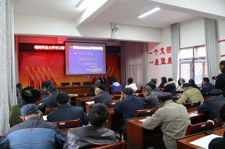 11月20日下午,为了助力当地脱贫工作稳步推进,实现依法依规脱贫,早日打赢脱贫攻坚战,徐德刚教授在永顺县首车镇龙潭居委会开展了主题为“明了法律生活,构建和谐社会”的村级干部、全体党员法律知识讲座。讲座内容从“法律生活的必要性、应该明了的法律知识、明了法律知识的几点建议”三方面介绍了有关土地管理、婚姻关系、相邻关系、农村医保、农民工就业等农村常见法律知识。徐德刚教授以当地村民常见的案例引出主题,语言通俗易懂,普及的法律知识符合农村法治扶贫实际需要,充分调动了参会人员的听课兴趣。此次讲座听众普遍反映受益良多,普法效果显著。法律知识讲座取得了良好的效果,相信也将有助于促进农村法治脱贫的步伐。