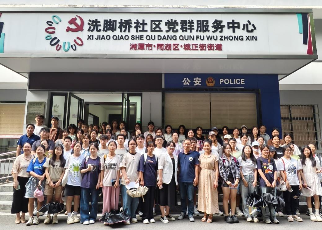 ▲ 学生在雨湖区洗脚桥社区见习合照