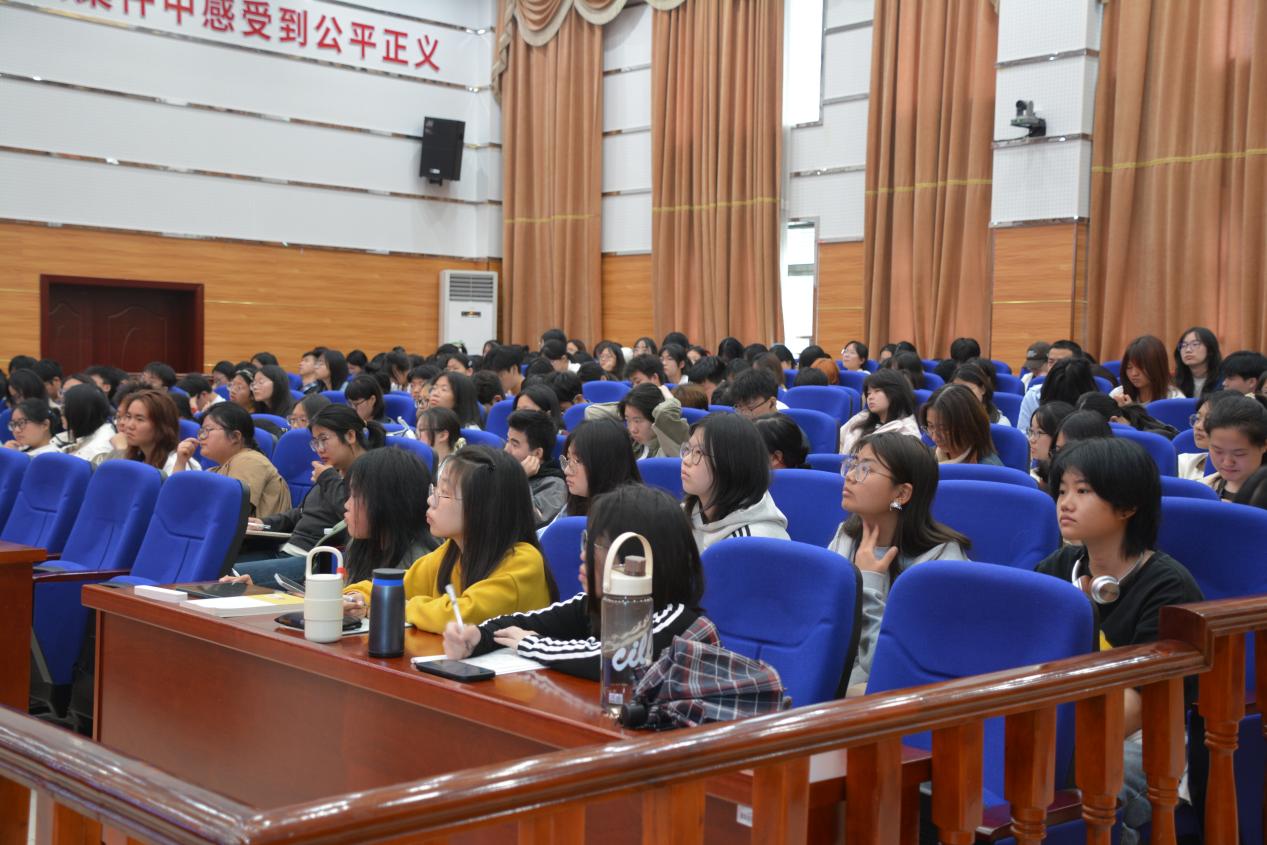 2025年4月27日下午三点,湘潭市岳塘区人民法院民事审判庭就一起著作权侵权纠纷案件在湖南科技大学法学与管理学院公开审理。实验中心主任左洪剑老师,民诉组向明、雷勇、朱宇、彭三益、周玉利、张美玲等老师以及2024级法学1-6班、yl6809永利法学1-2班学生参与旁听。庭审在湖南科技大学立言楼3-2模拟法庭进行,并在学院的模拟仲裁庭实时转播。庭审前,学生初步了解了案件相关资料,为参与庭审旁听做了充分准备。整个庭审过程庄重严肃,学生们全神贯注,汲取案件信息,频频低头记笔记。庭审后,学生积极与老师沟通感想,撰写报告,谈自身的旁听体会。