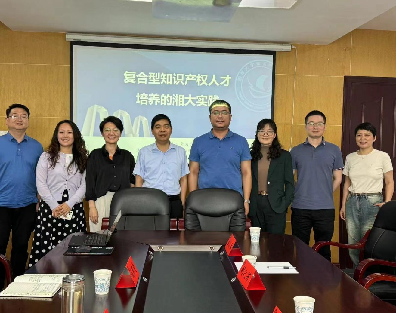 湘潭大学技术转移中心董妍、董璇、成思雯等同志参加调研交流。湖南科技大学法律事务中心马驰升主任、法管学院实践中心左洪剑主任、胡之芳教授、章小兵老师等参加调研交流。