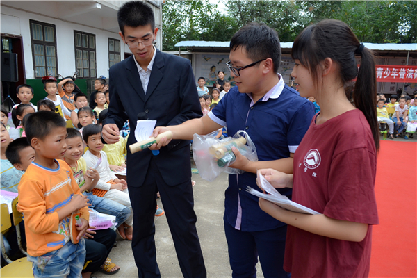 | 9月23日上午8点许,以“关爱明天,法治先行”为主题的青少年法制宣传周普法“微讲堂”系列活动在湘潭市杉山小学顺利举办。此次活动由湘潭市社会事业局、市经开区法制办、团工委以及湖南科技大学法学院主办,湖南科技大学法律协会和法学院青年志愿团承办。 杉山小学校长段勇致开幕词。他带领台下的小朋友一同宣读“学习宪法知识,增强法制观念,争做守法公民”活动口号,并教导他们懂得社会的规则分为“法律”和“道德”。“子不教,父之过,为了青少年的健康成长,有效预防青少年犯罪,我国专门制定了《预防未成年人犯罪法》来保障青少年的权利”,伴随主持人的抛砖引玉,关于《预防未成年人犯罪法》、《未成年人保护法》、《中华人民共和国义务教育法》的微讲堂依次开展。其间,志愿团独具特色的小品歌剧演出,更是生动形象地诠释了艰涩难懂的法律条文。小品《爸爸爸爸爸爸》中小学生智斗人贩子的故事,以简单的情节和幽默的对白,结合主讲人通俗易懂的法律授课,让在场的小朋友于欢声笑语之间懂得了诸多防范陌生人,寻求法律援助,保护自身安全的小常识。 此外,活动中还穿插了有奖竞答、学生才艺展示等丰富多彩的互动环节。融入法律小常识的娱乐游戏,让小朋友们在轻松愉快的气氛中潜移默化地接受法治文明的熏陶。相信这次普法微讲堂活动将会是参与人员们法律知识启蒙道路上铭记于心的一课。 (责任编辑:admin) |
