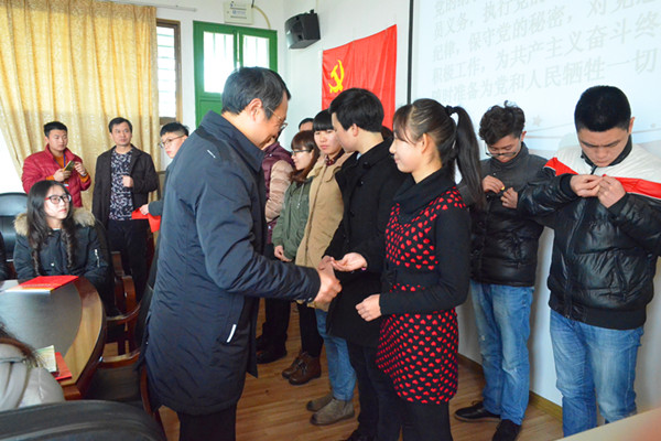 为增强全体学生党员的凝聚力,提升他们的服务意识和责任意识,成为普通同学的榜样,2015年12月31日上午10时,我院学生党支部于十教606教室召开2015年度下半年党员大会。与会人员有我院党委书记黄伟同志,副书记叶军同志,辅导员伍安同志以及全体学生党员。 会议开始,符一叶同志就2015年下半年党建办工作做了简短报告,明确我院现有党员的数量以及分布情况,并公布了17名新发展党员以及8名转正党员的名单。随后,新发展党员上台宣读入党誓词,面向党旗,他们举起右拳,庄严宣誓:“我志愿加入中国共产党……为共产主义奋斗终身,随时准备为党和人民牺牲一切,永不叛党。”根据院党委会的决定,我院调整为四个党支部:法学第一党支部、法学第二党支部、思想政治教育党支部以及哲学与研究生党支部。各党支部新设四名负责人,分别担任书记、组织委员、纪律委员,宣传委员。黄伟、叶军书记为上述同学发放聘书。 会议最后,叶军书记总结道:“发展党员是建设巩固党的领导中不可忽视的重要环节,各个党支部必须严格把关,认真筛选,为党和人民选取可用之才。党员应时刻学习进步,保持高度的积极性,创造更好的成绩。” (责任编辑:admin) |