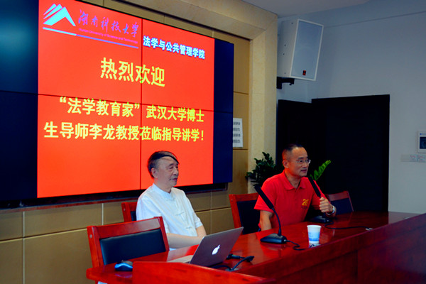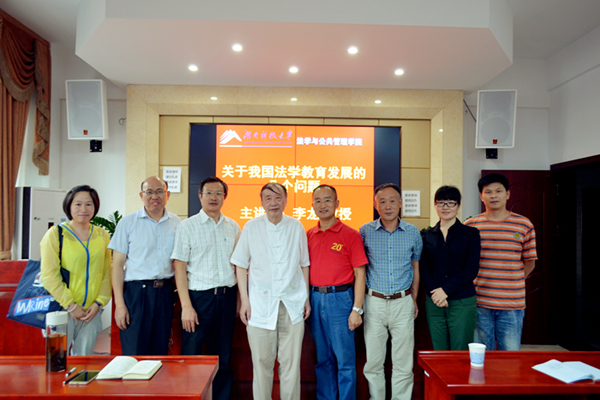 ——记湖湘法治论坛十七讲   9月20日下午4时30分,法学教育家、武汉大学资深教授、博士生导师李龙应邀来我院指导,并于文科楼A425会议室开展以“关于我国法学教育发展的几个问题”为主题的讲座。院长徐德刚担任主持,党委书记黄伟、副院长胡正昌、副书记叶军、专业老师李云霖、夏飞明、胡之芳、李倩和15级法学专业学生到场学习。 “法学最早研究的是人的行为规则,‘法典是人民自由的圣经’,我们研习法律,一方面希望确认和保障公民自由权利,另一方面也是确保公民正确行使自由权利。”李龙教授详细为大家讲述了法学教育的发展历程,从春秋子产造刑书到中国历史上第一部较完整的封建社会法典《法经》的制定, 从三国魏明帝时设律博士职专门传授法学到晚清法学家沈家本仿照西方模式修订法律。 “曾经的法学本科教育是有专业区分的。上世纪90年代末,国内法学本科教育改革呼之欲出。我当时曾指出,中国法学教育改革的关键在于更新法学教育观念,即摒弃从苏联沿袭过来的‘对口教育’理念,转而探求法学素质教育,着重培养学生的能力,并提出将过去分散的几个法学专业合并成一个法学本科专业。”李龙教授由此告诫大家在法学发展的新阶段要抓住机遇,并以新姿态、新思想去研究新问题。 结合当代法学教育问题的现状,徐德刚院长虚心请教:“老师应如何加强对本科生的培养以及法科生的未来趋势会是怎样的?”李龙教授答道:“我常常对我的学生提出‘三要求’,倡导‘三精神’。 ‘三要求’即要博览群书,要勤于思考,要笔耕不辍;‘三精神’即夯实基础理论的勤奋精神、联系现实问题的批判精神以及开拓理论前沿的探索精神。同时我们要看到法学的前途,积极奋斗,永不服输。”至此,讲座圆满结束。 (责任编辑:admin) |