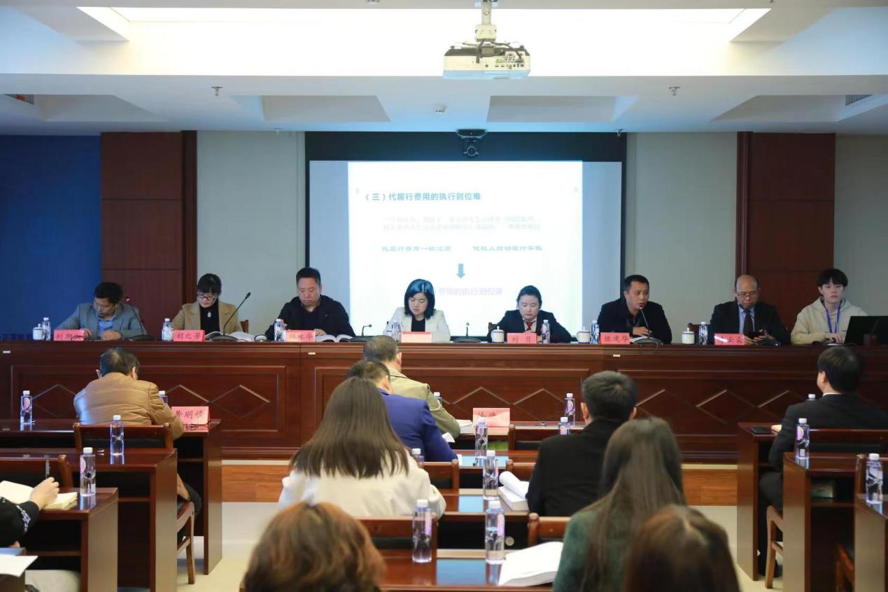 下午的会议由三个单元组成,第一单元的学术研讨会由湖南工商大学法学院院长刘期湘教授主持。第一位报告人是我院的李云霖教授,报告题目为《基本法典编纂进程中行政证明标准的形塑》。李教授认为,应当重新思索行政证明标准的规范概念和制度意义,考虑具体行政行为的类型特征、行政程序与诉讼程序的衔接问题,转变立法思路,在行政法典中制定具有指引性、层次性和一致性的行政证明标准。第二位报告人是郴州市中院执行局副局长陈建华,陈局长以《环境污染责任纠纷案件代履行制度的实证研究》为主题,以问题为导向,提出了诸如确定代履行人、制定代履行方案、确保代履行费用到位、加强对代履行的监督等解决方案。第三位报告人是长沙县法院的刘贝法官,报告题目是《医疗损害纠纷中机会丧失规则案例分析即本土化路径探寻》,刘法官结合司法实践中发现的问题,对何为机会丧失理论做出重点阐述。第四位报告人是来自湖南天恒律师事务所党支部书记、高级合伙人李萍,李律师结合从业经验,与大家分享了月工资无法查明的情况下,工伤赔偿标准应该如何认定。我院胡之芳教授作为与谈人对各位报告人分享的学术观点做出一一点评,并对行政证明标准体系构成、代履行中第三方权益保障等问题提出了自己的思考。另一位与谈人——长沙市中级法院研究室主任杨林华结合他本人长期以来的丰富实践经验,对几位发言人所论及的问题发表了自己作为裁判者的独到见解,他还表示应当加强实务届与学术界的交流,以理论指导实践的顺利进行。在现场交流环节,大家对代履行费用认定的标准问题、建筑工地“农民工”受伤的工伤认定问题等展开了进一步的讨论。
