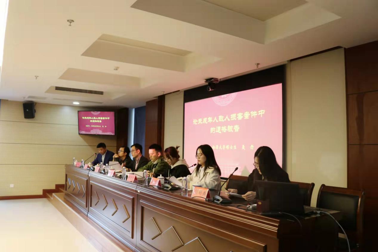 第三单元的学术研讨会由长沙学院法学院副教授蒋伟龙主持。第一位报告人是来自我院的研究生闫明燕同学,报告的题目是《合同借贷领域典型案例研究》,闫明燕同学从3个典型的借贷案件入手,对案件涉及的“后让与担保”的问题进行了性质界定和理论研究。第二位报告人是来自湘潭大学的研究生聂丹同学,报告的题目是《论未成年人致人损害案件中的适格被告》,聂丹同学从未成年人的责任能力、监护人责任适用原则和监护人责任的性质等方面对《民法典》第1188条进行法理分析。第三位报告人是来自中南林业科技大学的研究生张漾北同学,报告的题目是《催收非法债务行为的刑法规制》,张漾北同学通过对26个催收非法债务行为相关的案例样本进行分析,提出研究此类案件需要对罪与非罪、此罪与非罪进行甄别。第四位报告人是来自长沙理工大学的研究生罗官正同学,报告的题目是《挂靠情形下施工企业工程款支付风险及其法律保障》,罗官正同学通过对最高院判例观点进行整理,认为发包人直接向挂靠人支付工程款时,被挂靠人可以直接向发包人起诉请求其支付工程款。随后湖南师范大学法学院的赵冠男博士和湘潭大学法学院的王译博士对四位研究生的发言进行了精彩的点评,同时就挂靠问题和未成年人致人损害问题提出了不同的见解。