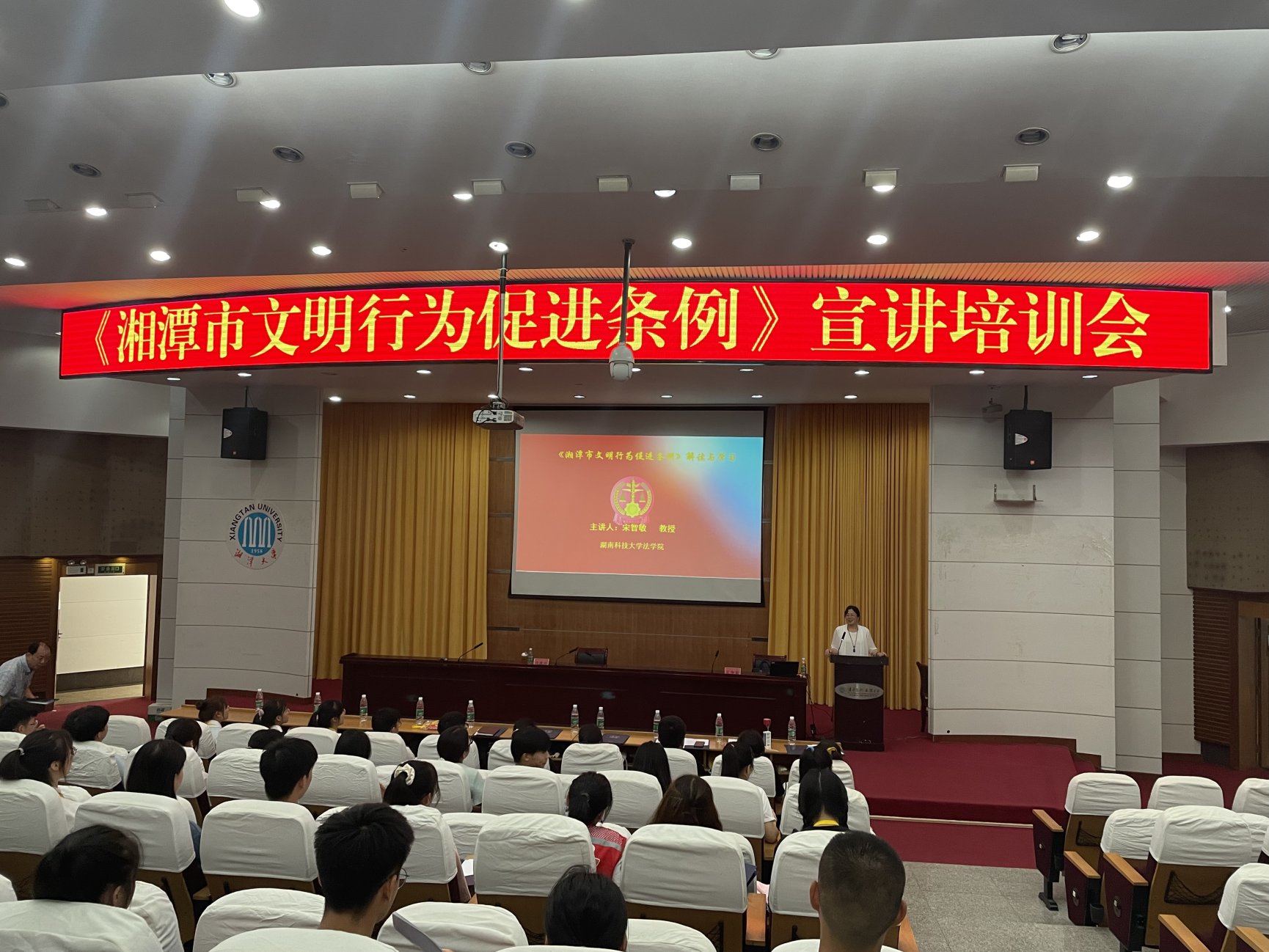 2021年7月12日,《湘潭市文明行为促进条例》宣讲培训会在湘潭大学图书馆举行。我院宋智敏教授应湘潭市市委宣传部的邀请为大学生志愿者进行条例的解读和学习。