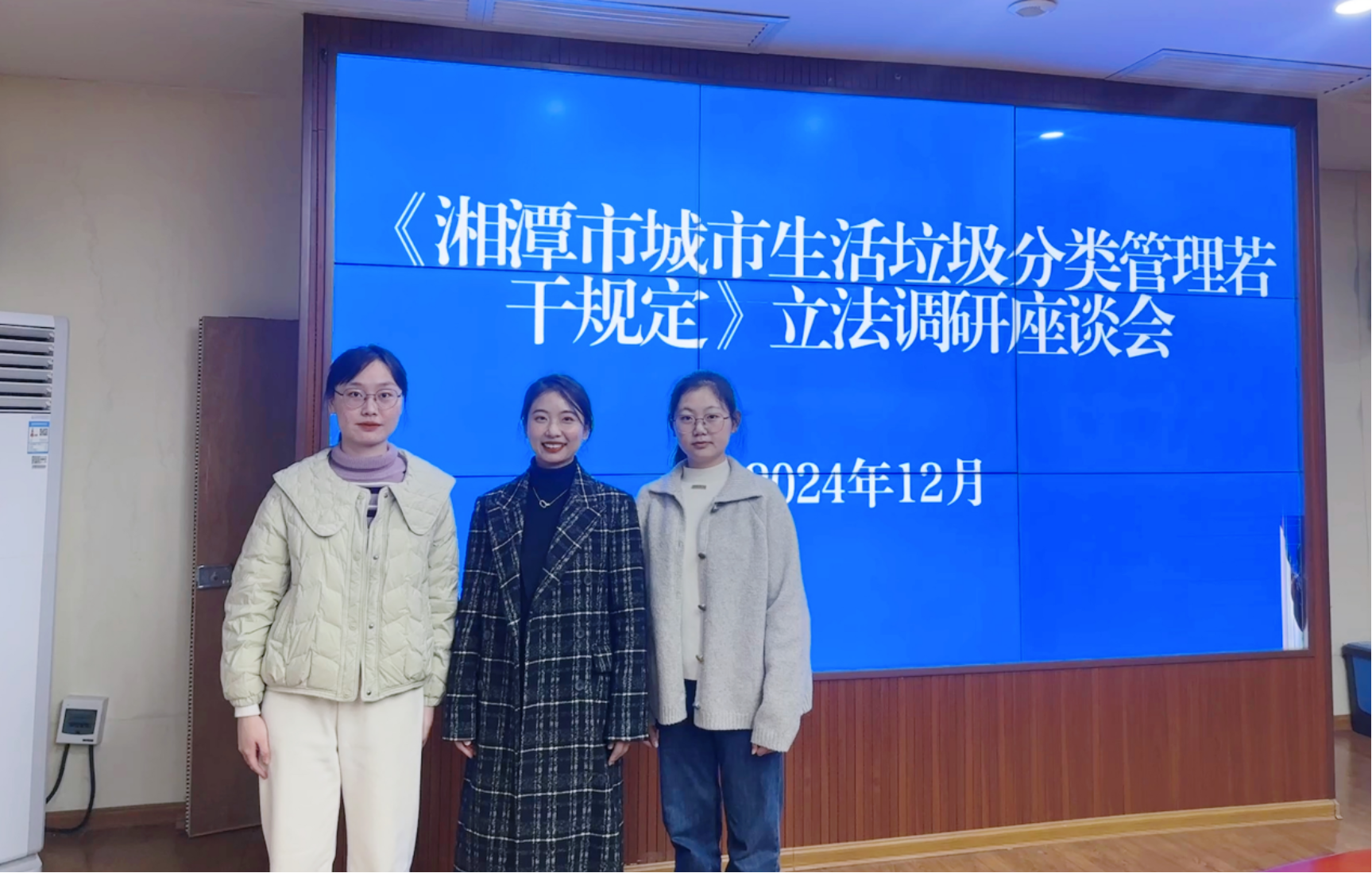 12月11日上午,湘潭市司法局、城管局相关负责人赴湘潭县调研,我院立法团队成员谢沁颐、李文静、唐小曼参加立法调研座谈会。来自湘潭县司法局、城管局、市生环局县分局、住建局、自然资源局、发展与改革局、财政局、农业农村局、政府办、编办等部门及乡镇、基层立法联系点、人大代表、政协委员、物业、房地产、环保协会和环卫所等各单位代表出席参会。会议由湘潭市司法局副局长周牛主持。