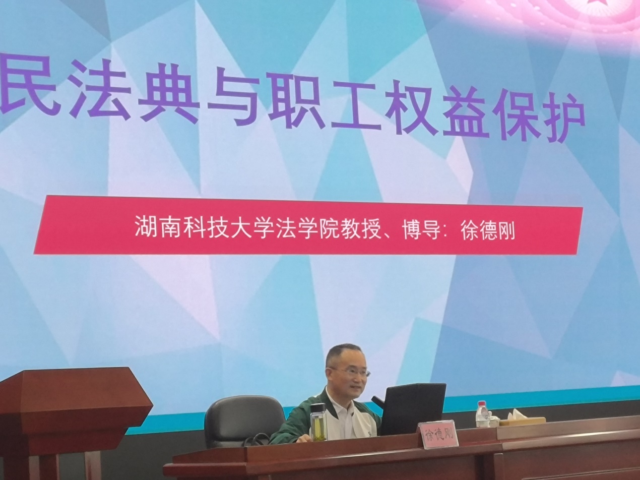 自2021年被聘为湖南省总工会法治宣讲团成员以来,我院徐德刚教授始终不忘自身职责,致力于为各级工会组织宣讲法律知识,克服疫情带来的不利影响,先后为郴州快递小哥送法,为省总工会办公室主任培训班讲法,受到广大听众的一致好评。5月9日、16日,徐教授又不辞辛劳,应湖南省总工会干部学校邀请,先后为长庆油田公司两期工会主席培训班主讲了题为《民法典与职工权益保护》的法治课,重点讲授了职工权益保护的相关法律知识,为培训班工会领导送上了一顿法律大餐。