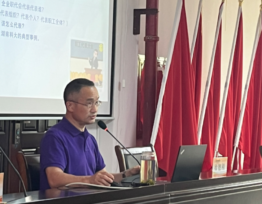 近年来,为推进企业民主管理,提升职工代表履职能力,不少企业纷纷加大了职工代表培训力度。6月6日下午,我院教授徐德刚受湖南胜利湘钢钢管有限公司邀请,为该公司中高层领导、工会主席、职工代表主讲了一场题为“新时代如何当好职工代表”的讲座。湘钢钢管公司总经理昌发祥、相关职能部门负责人和职工代表共计60余人与会。